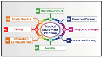Medical Equipment Planning provides the exact requirement of equipment by the hospital and the end-users. The process ensures early budget and planning decisions, start in programming and schematic design please, in addition, the impact of the equipment on the architectural design. We also extend our services for most comprehensive, integrated and systematic medical equipment planning and procurement with “No Ties To Manufacturers” with updated info and software. The scope of services also includes;
